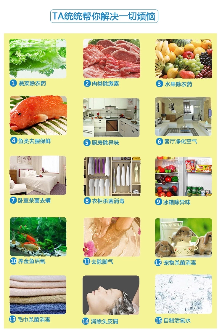 解毒保鮮現在市場上出售的蔬菜、水果殘留農藥嚴重超標,用水沖洗、浸泡都無法消除,對人體危害極大。臭氧水是一種對各種致病微生物有極強殺滅作用地消毒滅菌劑,用臭氧水清洗瓜果...